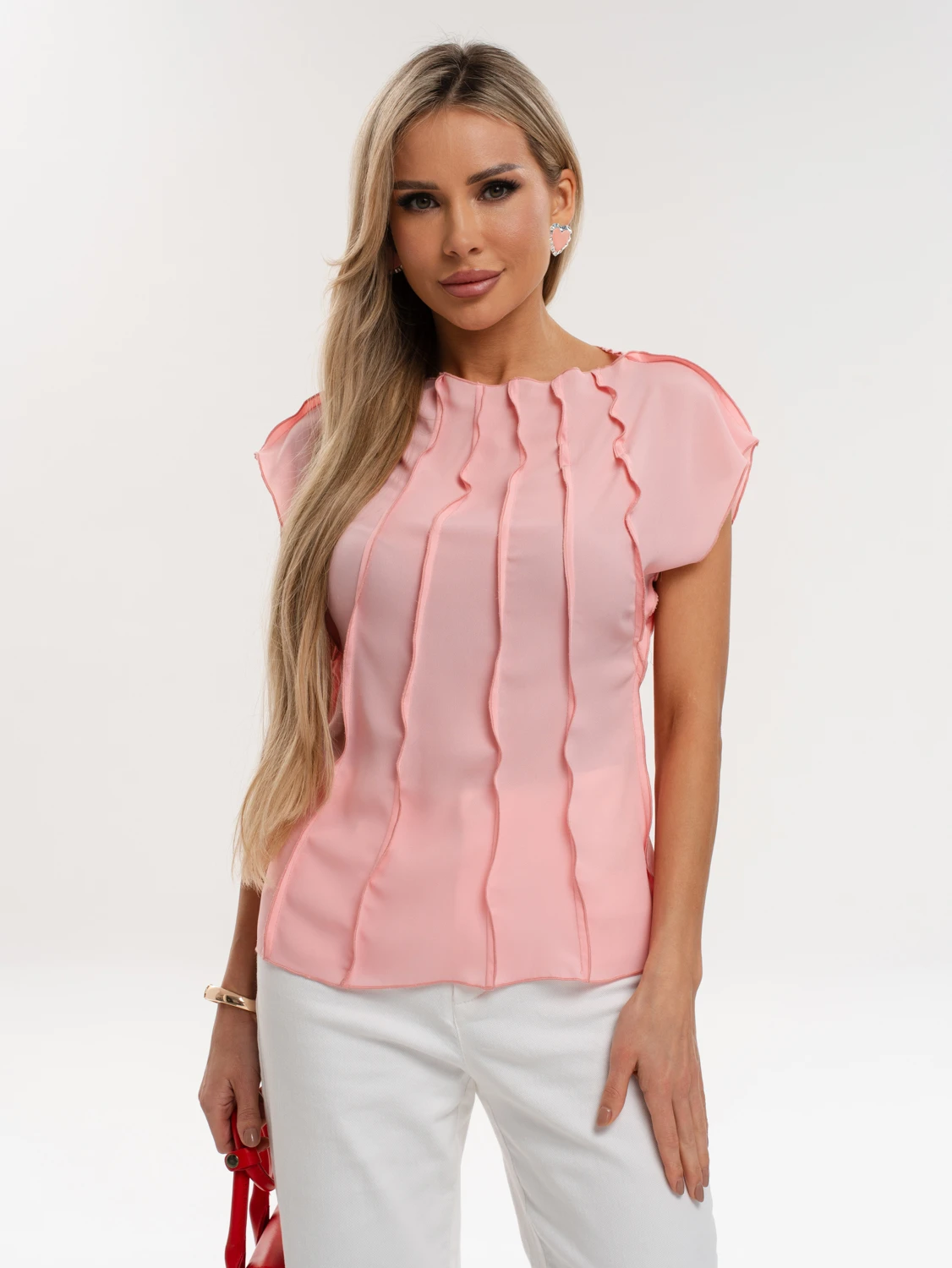 Блуза из креп-шифона с декоративными вертикальными отстрочками по всему изделию.