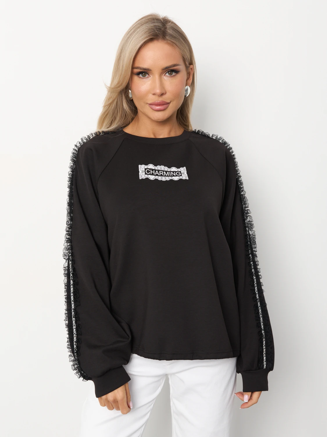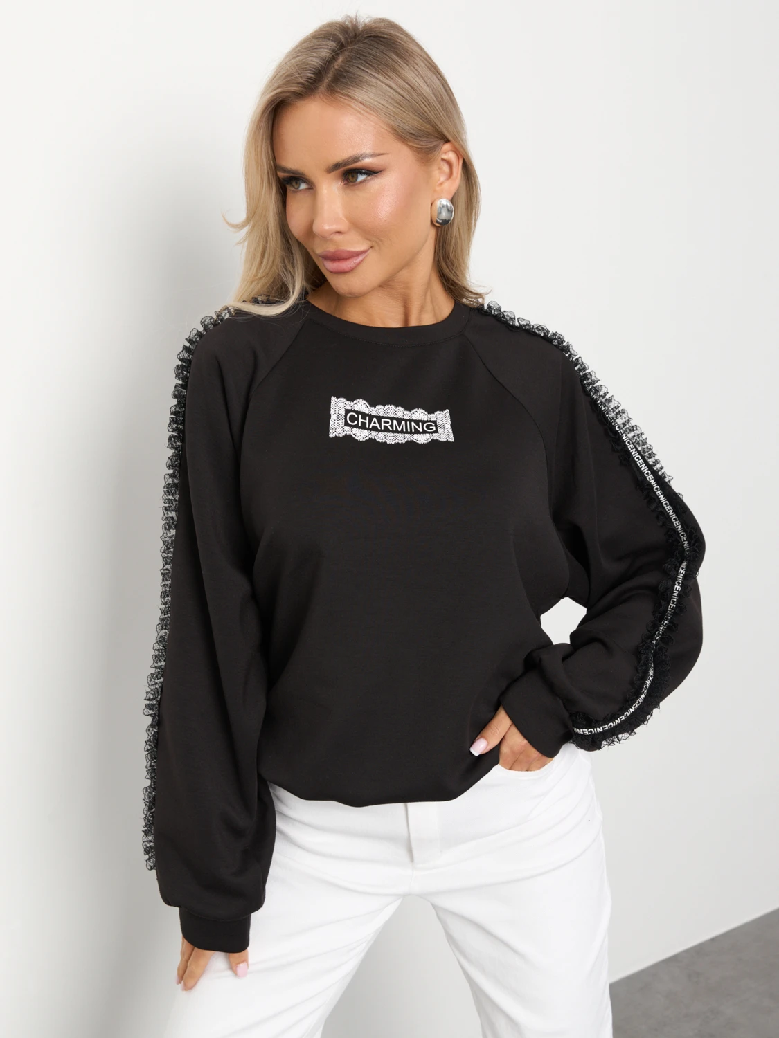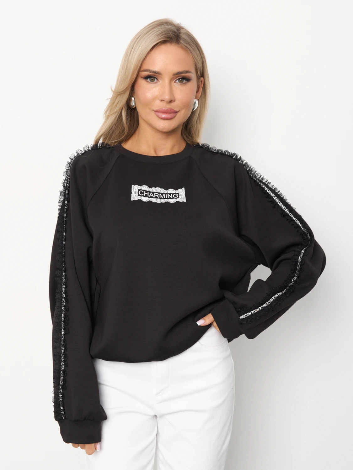 По низу изделия вшита кулиска, что позволяет носить джемпер как свободным, так и собрать его на кулиску.