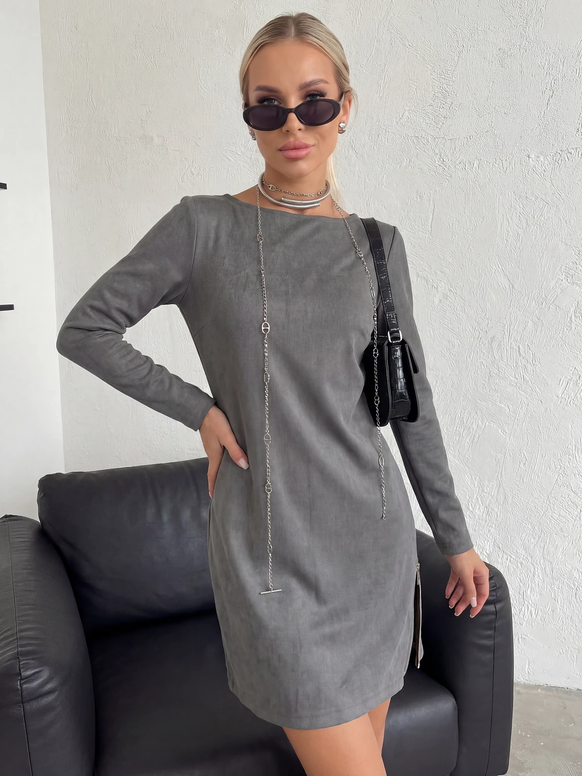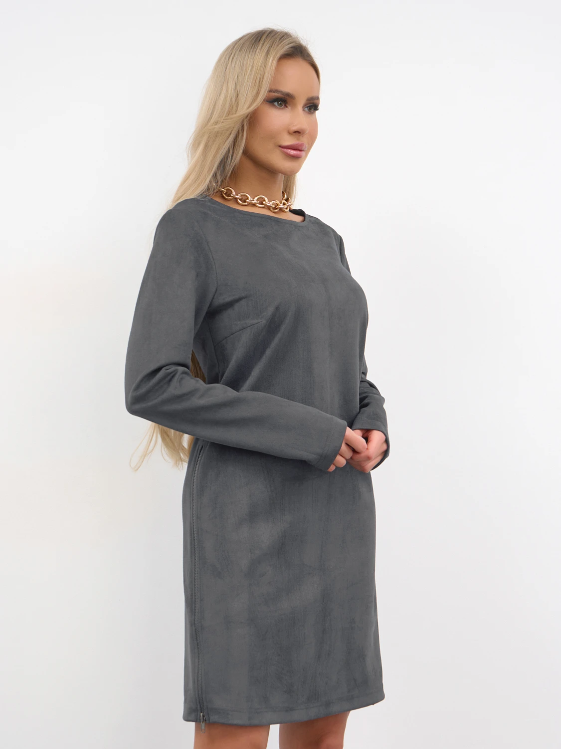 Платье А-силуэта с вырезом горловины лодочка из нежнейшего вельвета.