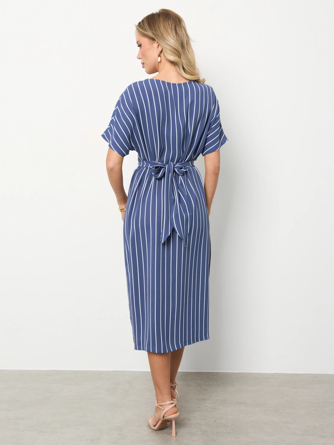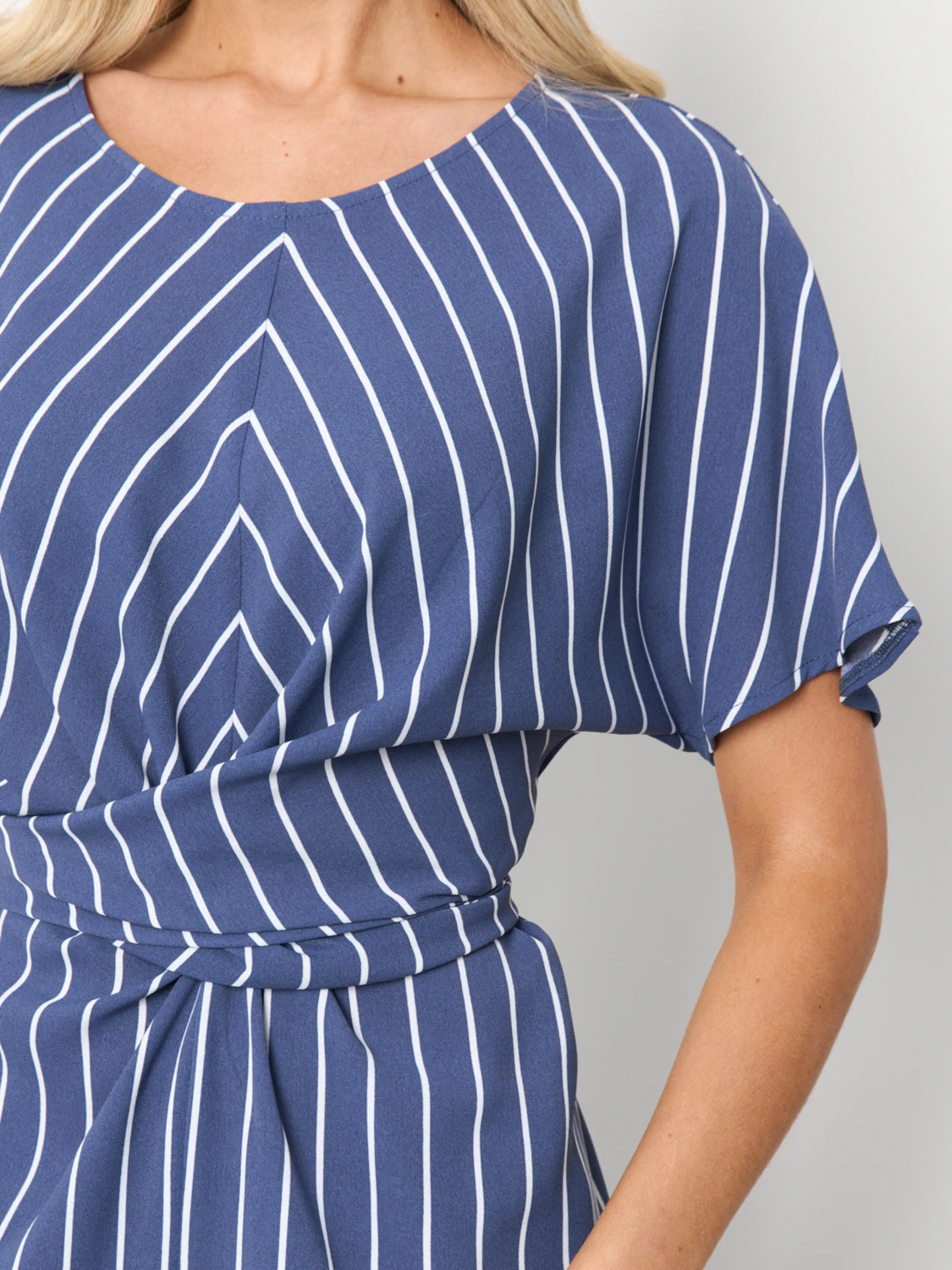 На талии цельнокроеный перекрестный длинный пояс.