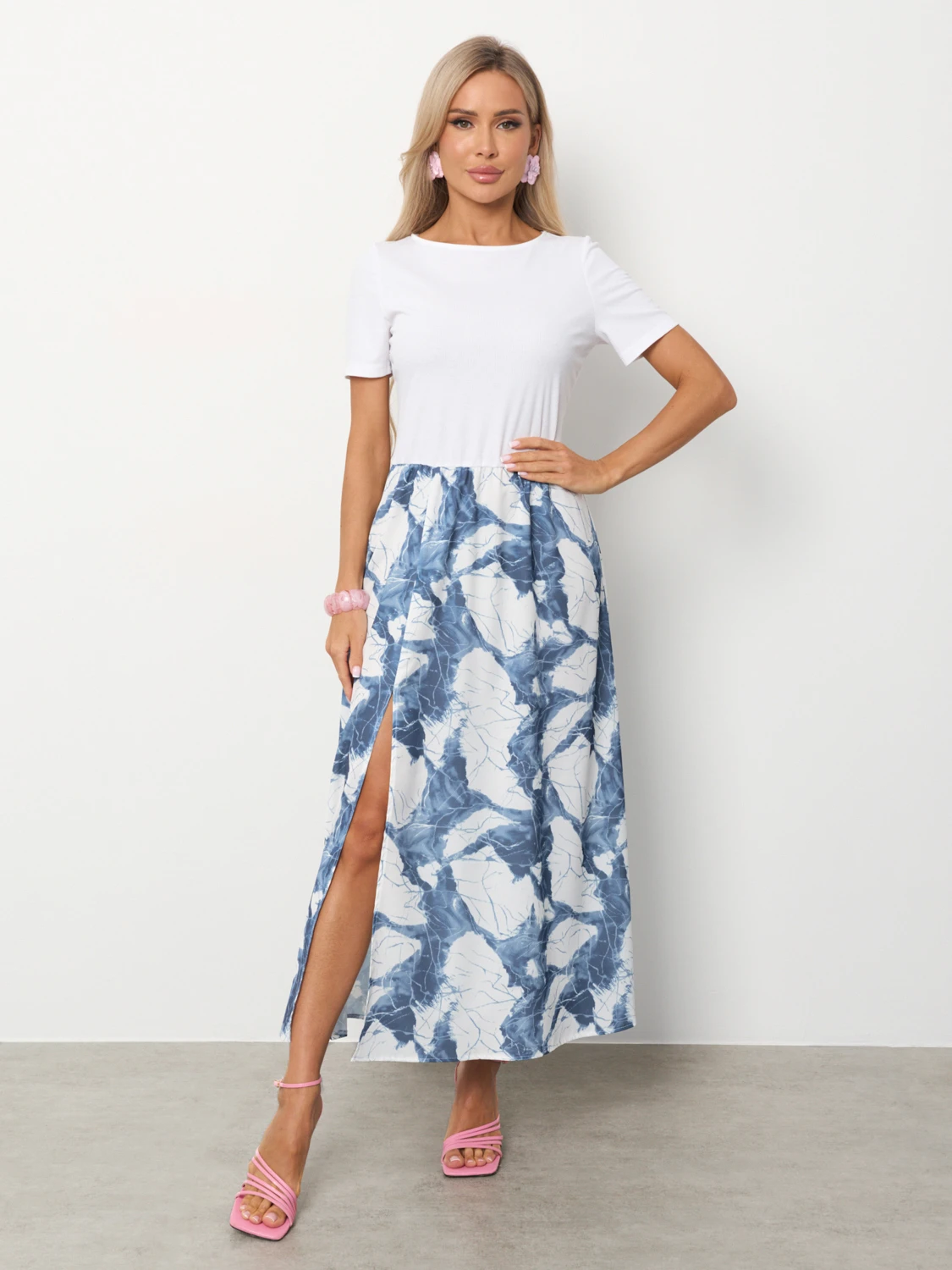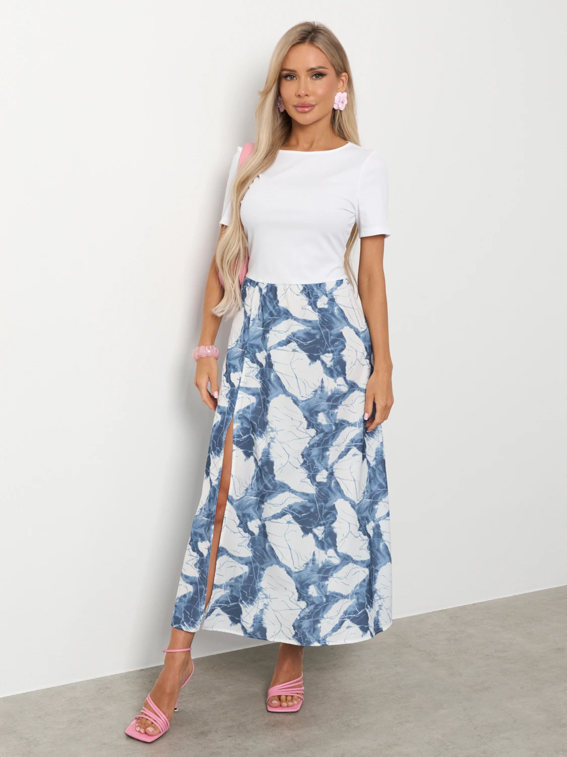 Верх выполнен из трикотажа-лапша, юбка из тонкой плательной ткани.