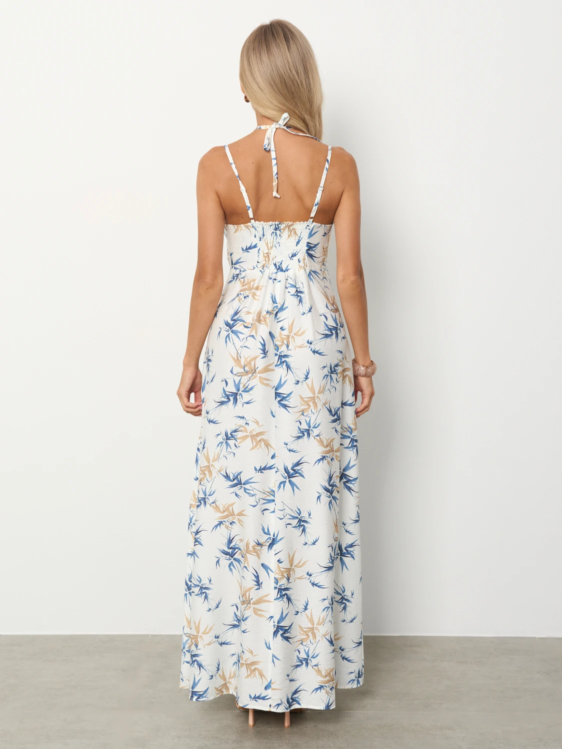 Летний сарафан длины макси на тонких бретелях , выполненных из основной ткани.
