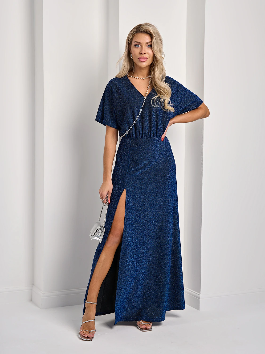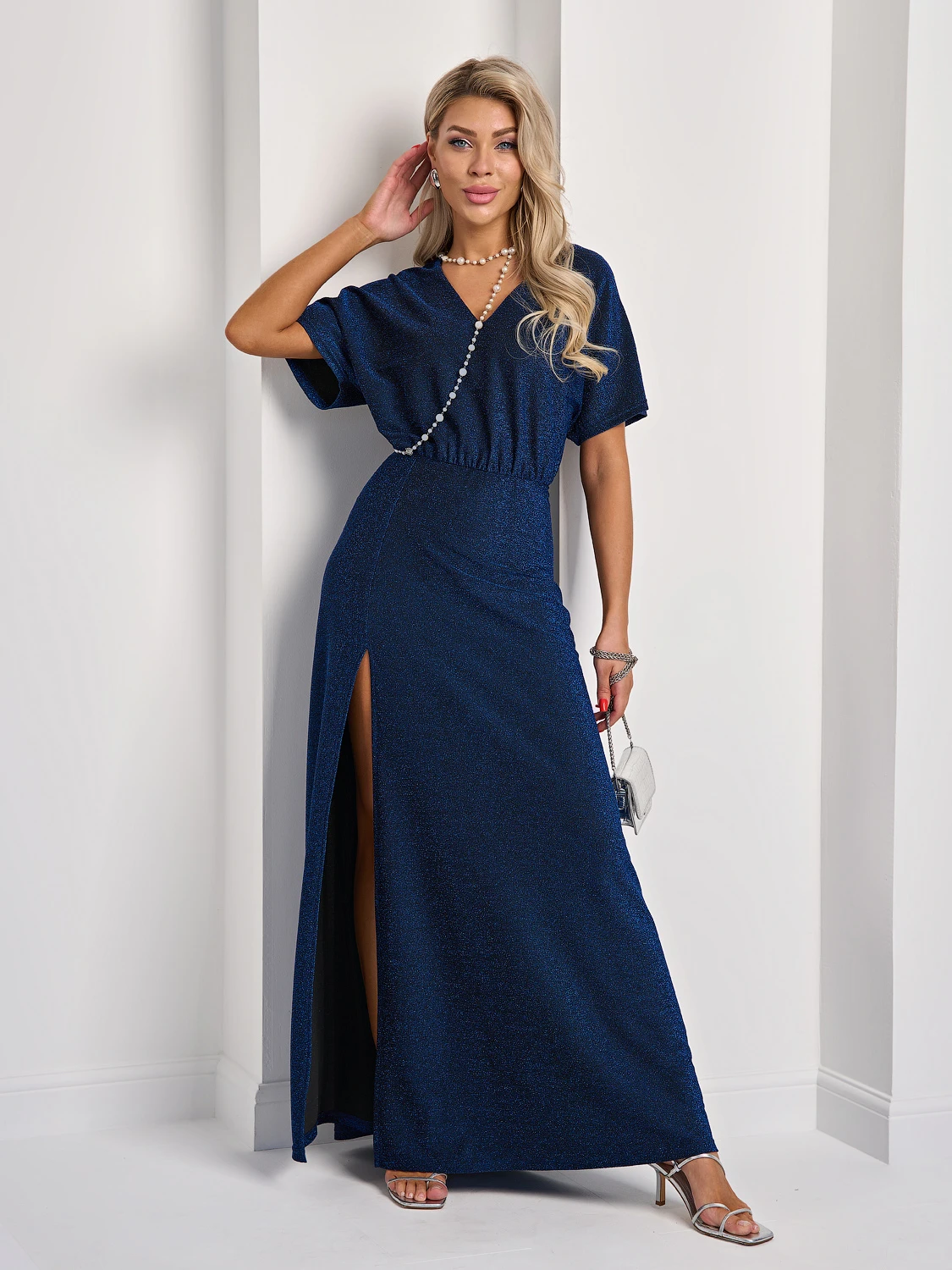 Платье из тритотажа с люрексом длины макси.