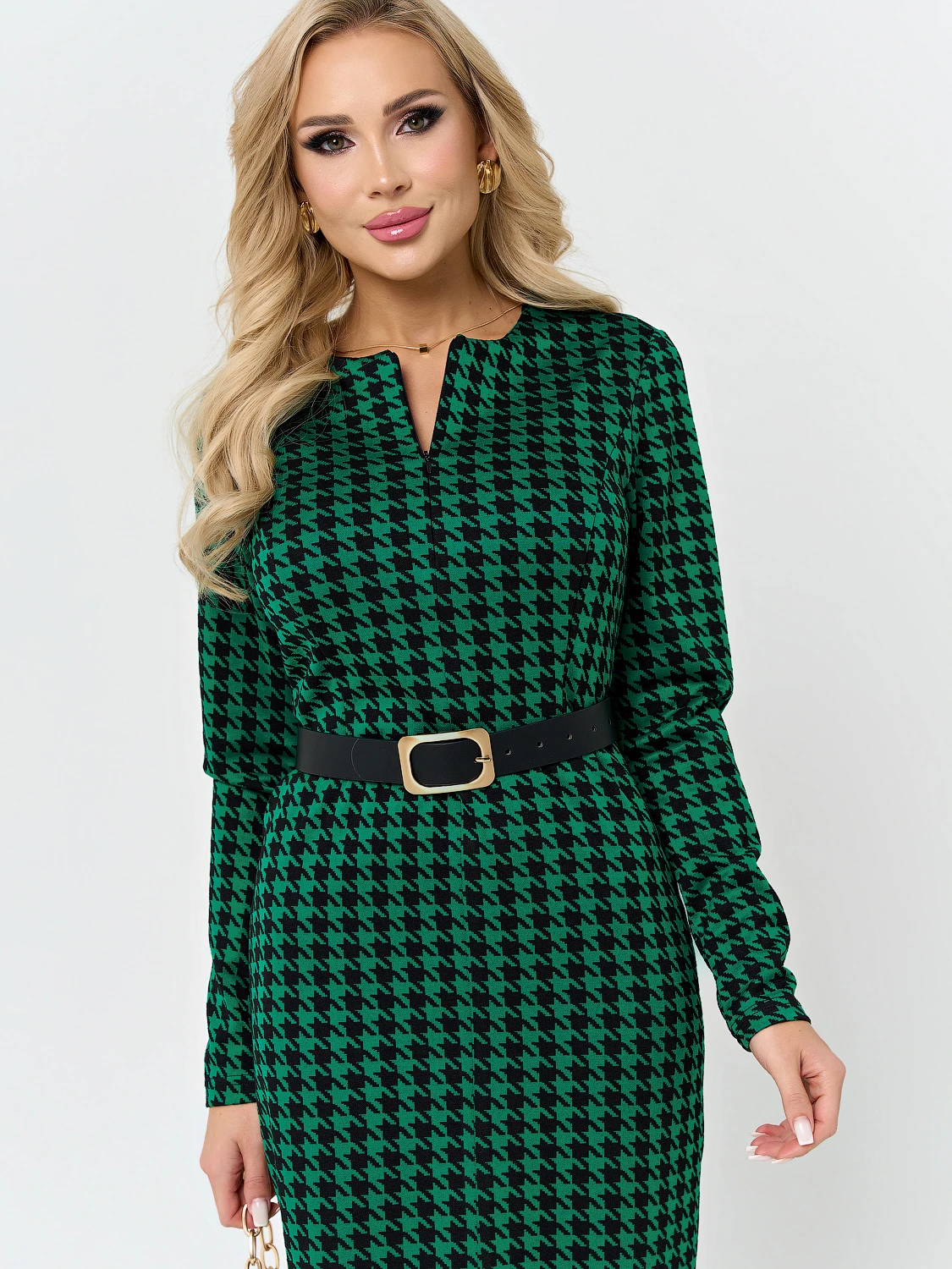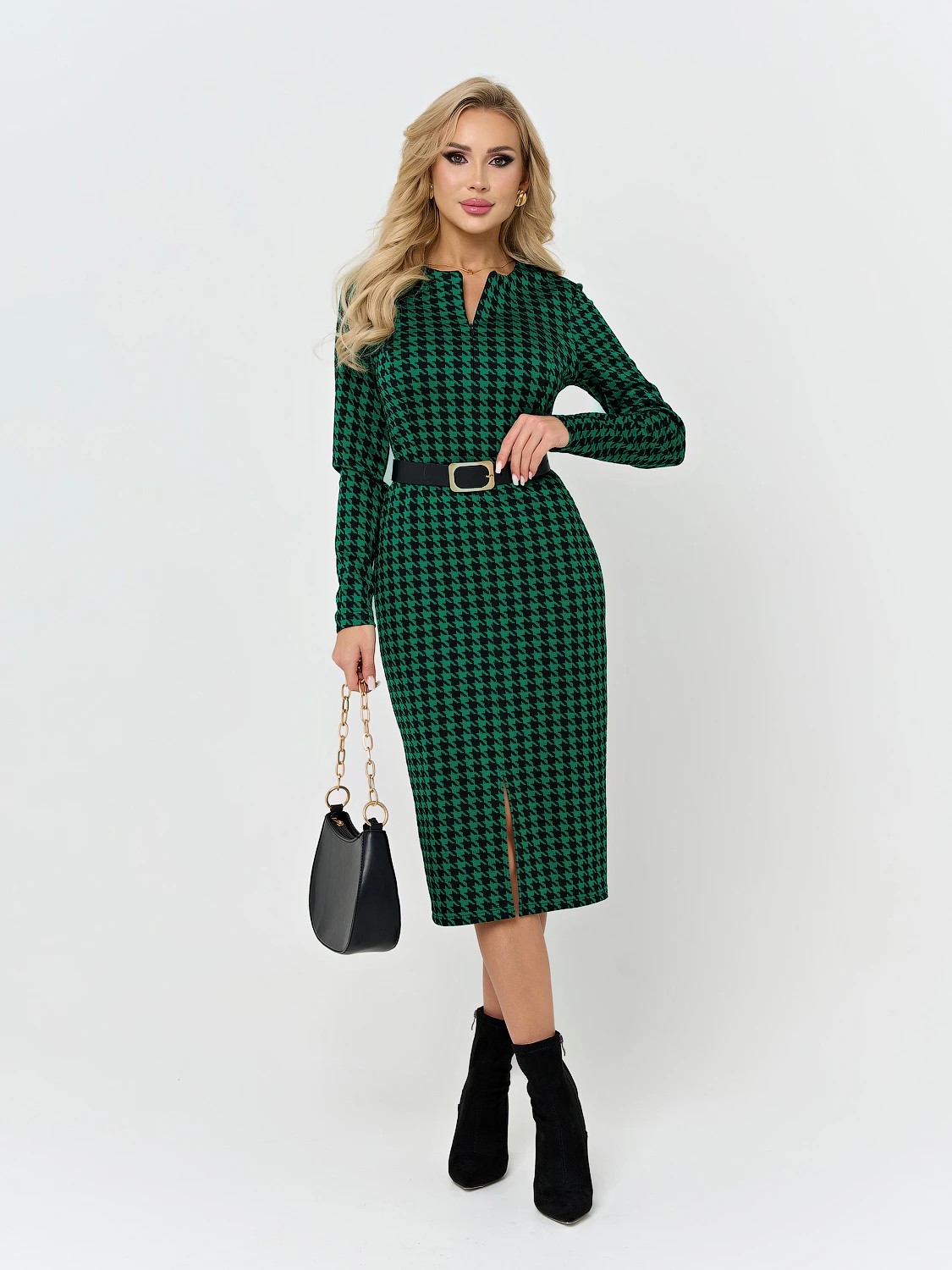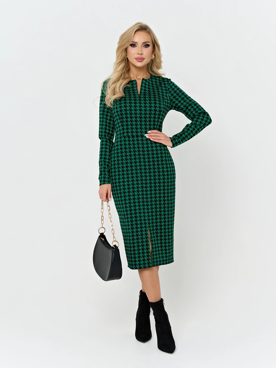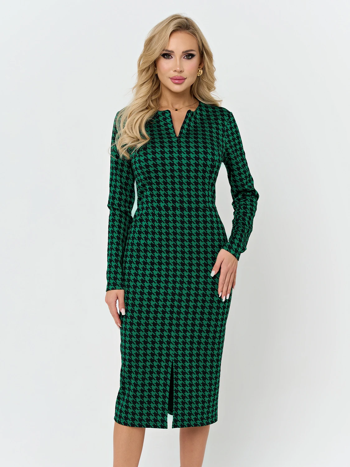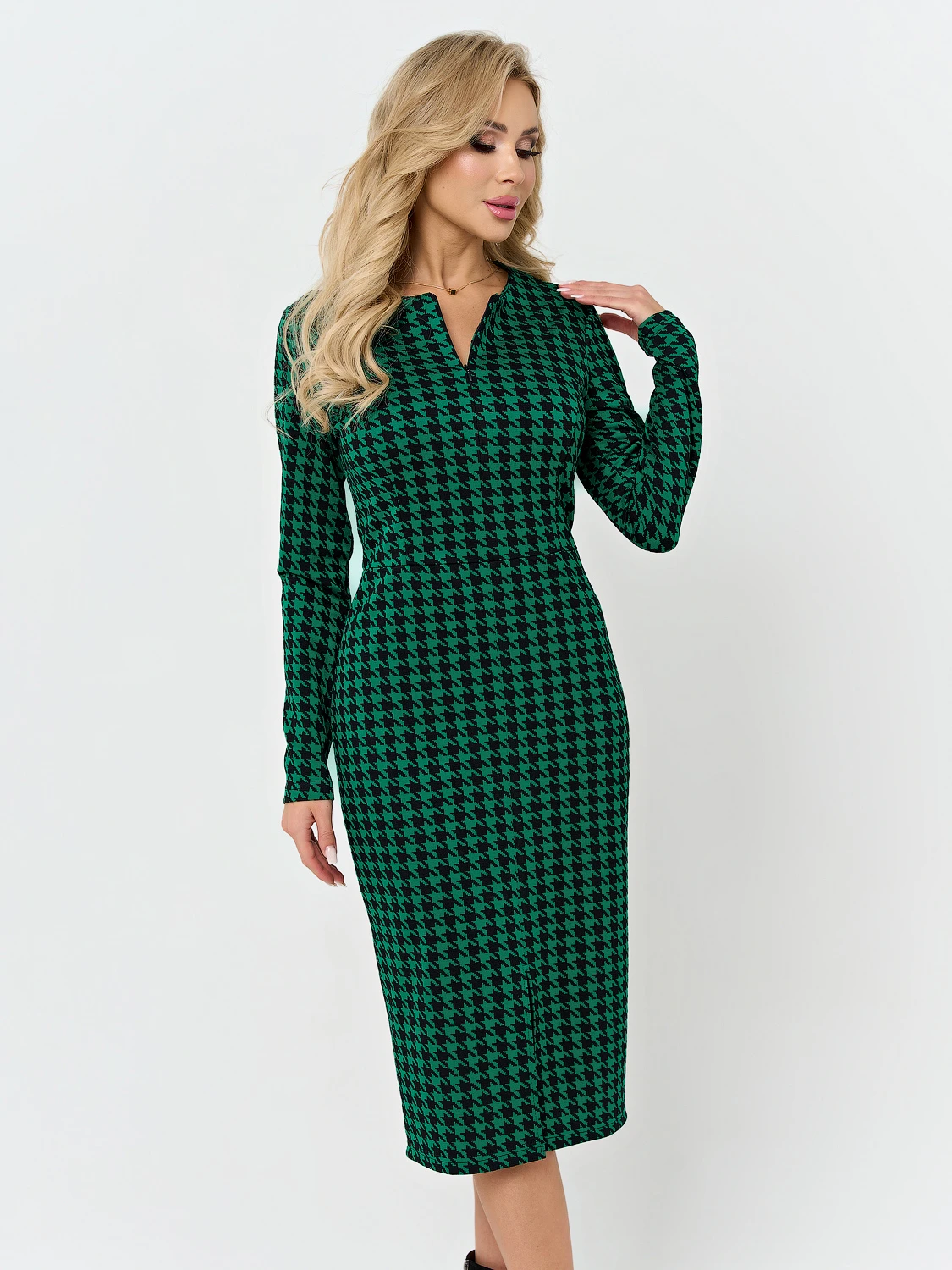 Платье длины миди отрезное по линии талии.