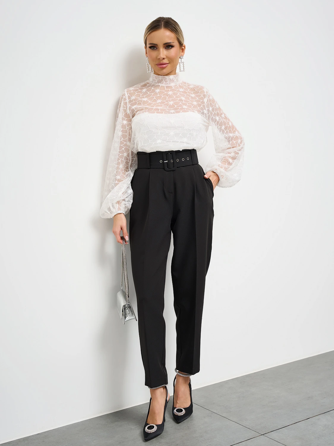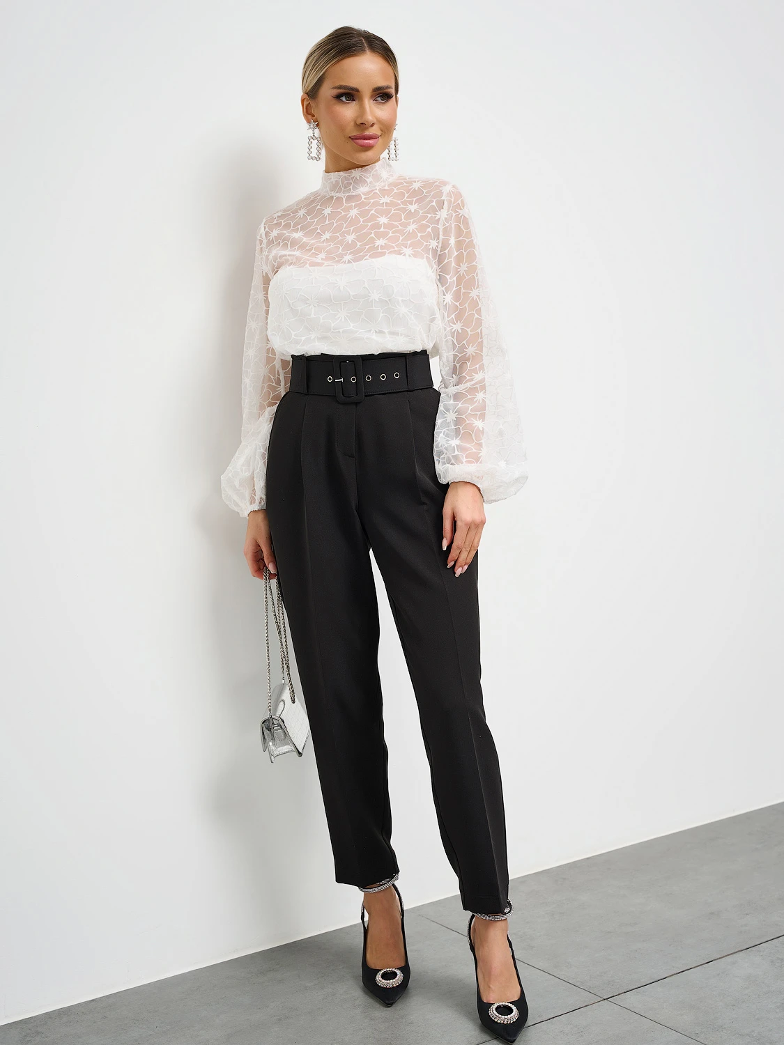 Блузка свободного силуэта из сетки с бархатным напылением.
